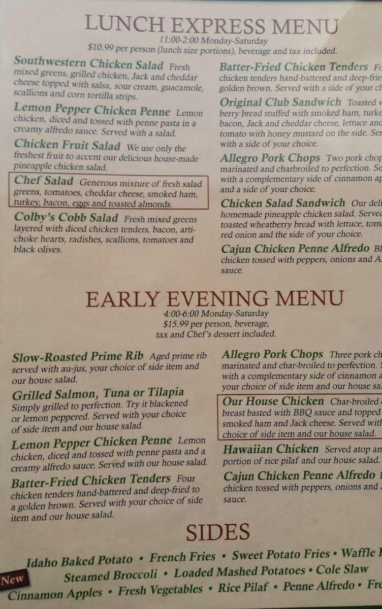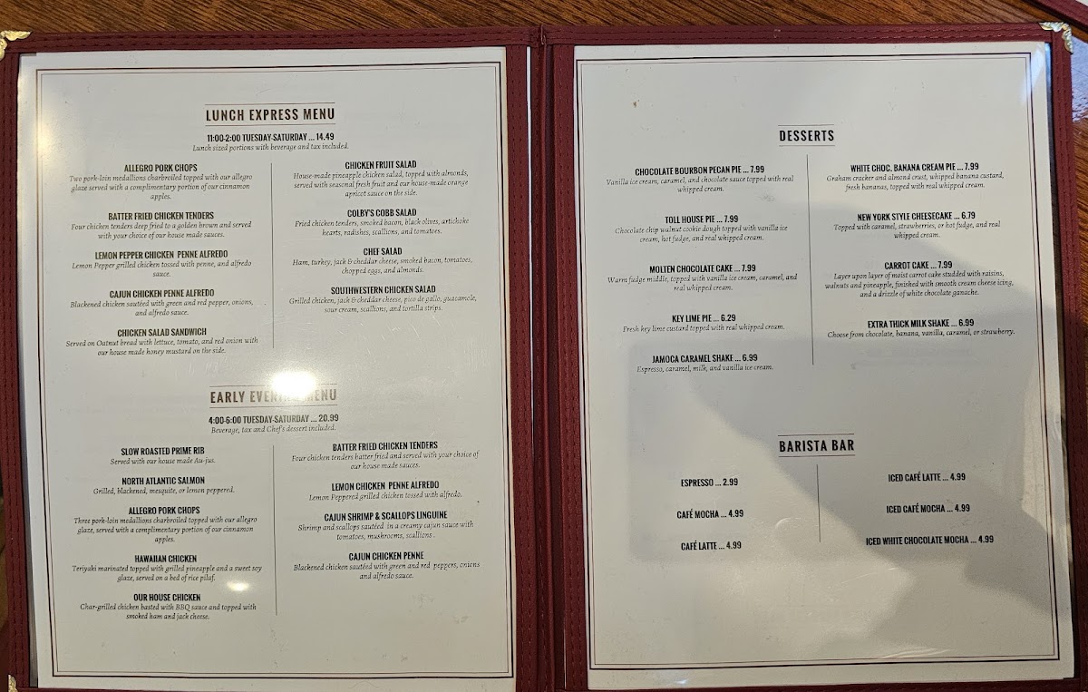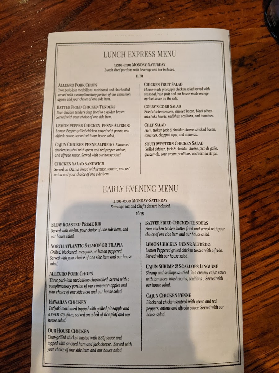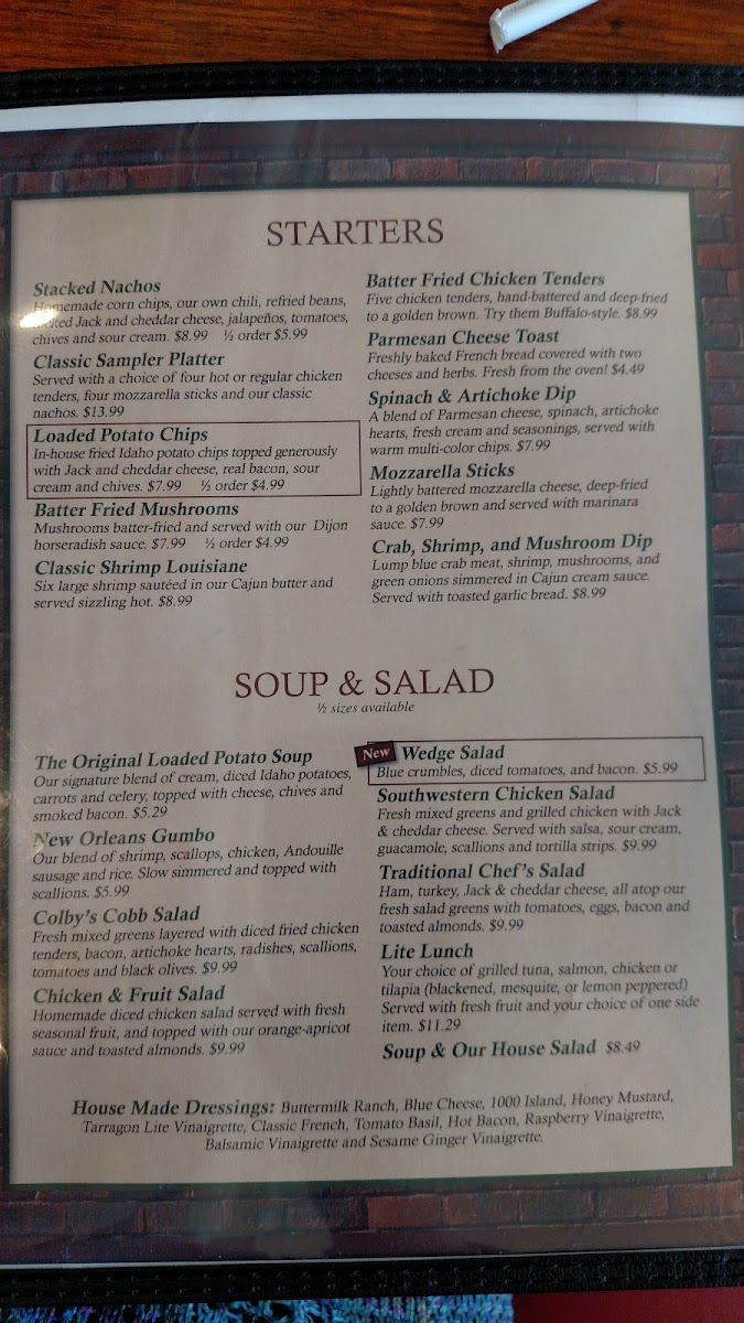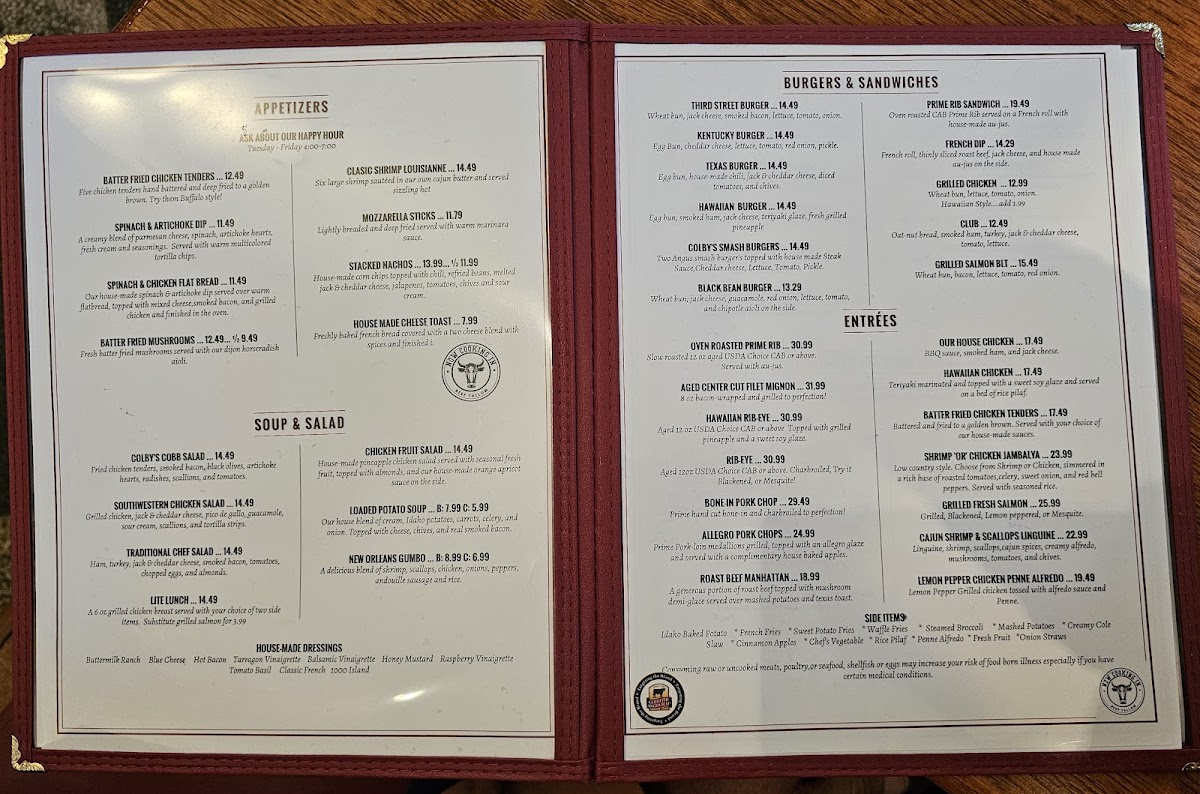 Colby's Fine Food & Spirits Menu